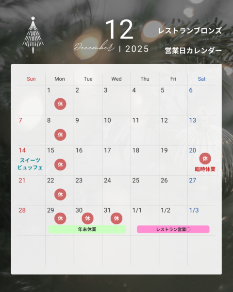レストランブロンズ 冬の季節メニューのお知らせです。
