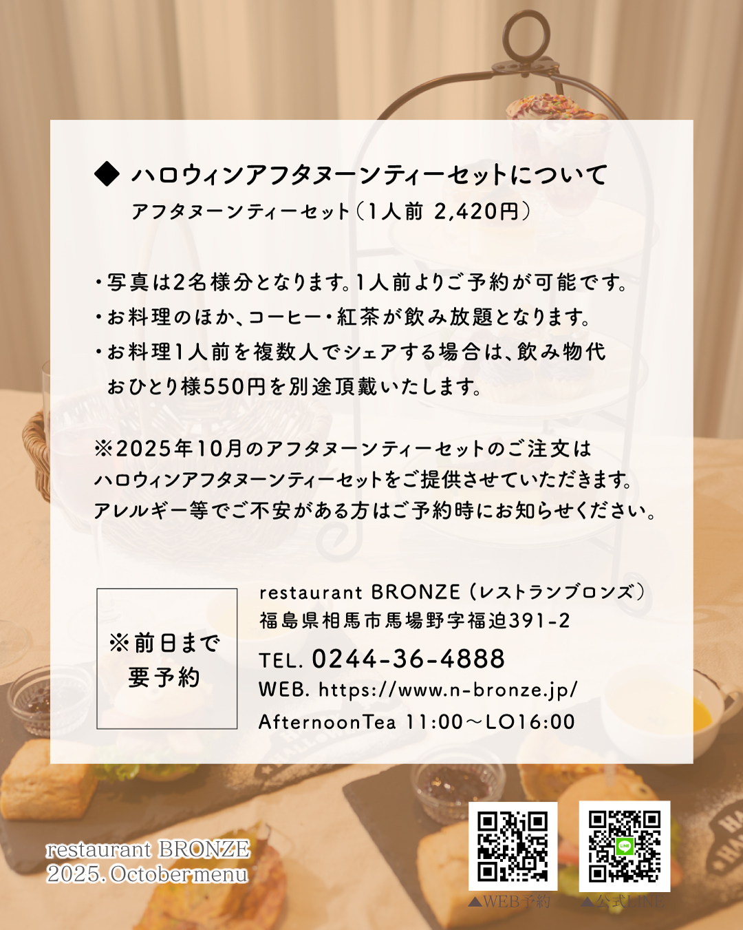 ※2025年10月のアフタヌーンティーセットのご注文は