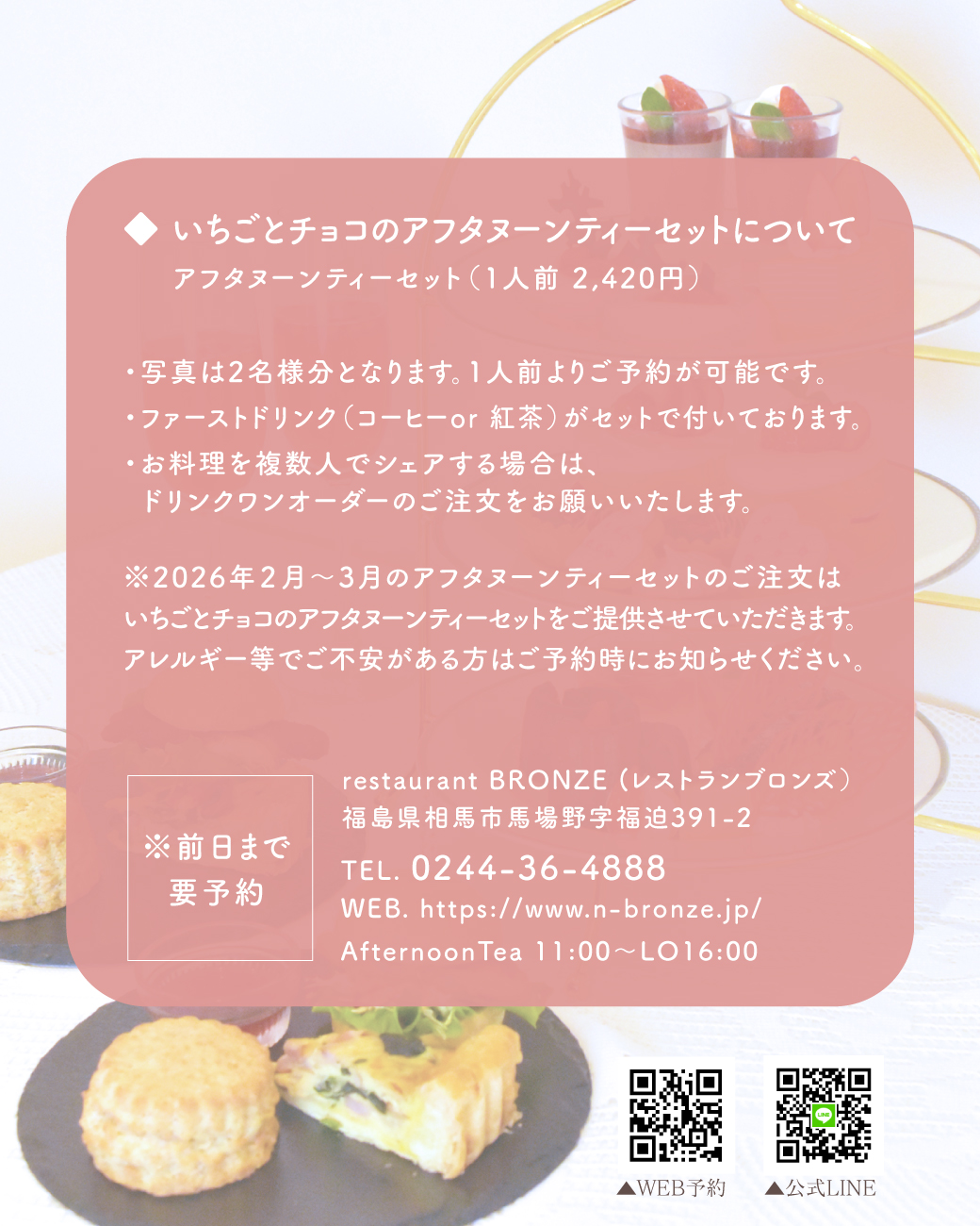 ※アフタヌーンティーは前日までにお電話、またはWEBにてご予約下さい。